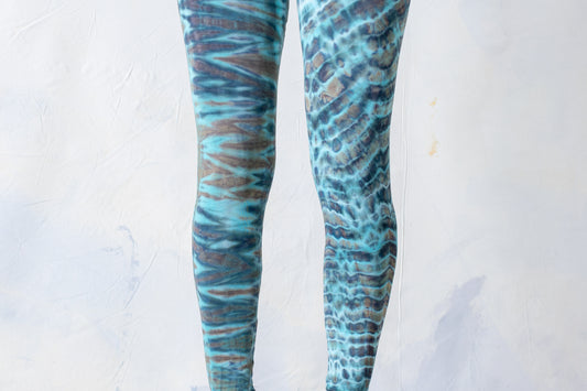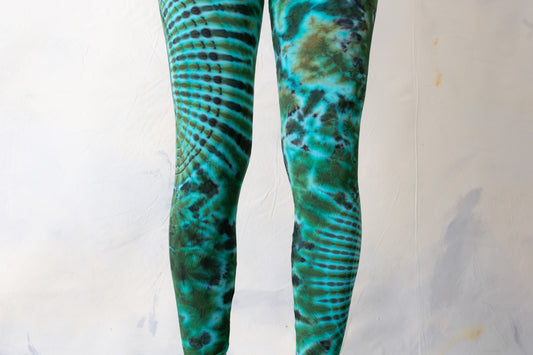 Leggings mit punky Kritzi-Kratzi Muster - Siebdruck, Batik, Tie-Dye - unisex - blau-grün-beige