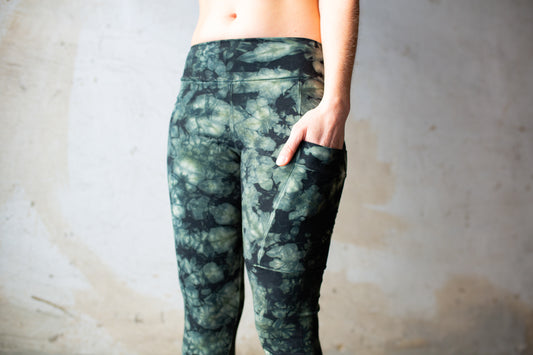 Yoga Leggings - Leggings mit Tasche - Batik, Tie-Dye - dunkelgrün-oliv