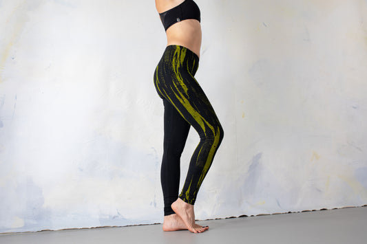 Leggings mit Reptilienmuster - Batik, Tie-Dye - unisex - schwarz-grün-gelb