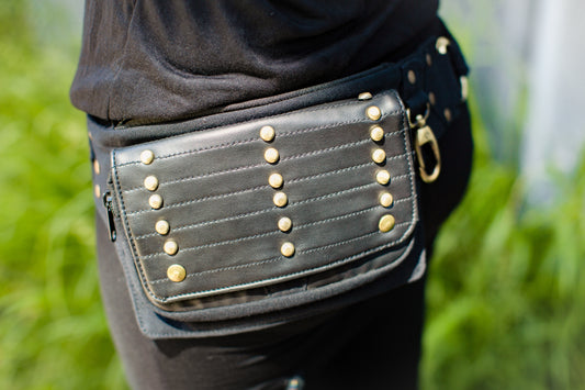 Bauchtasche - mit Kunstleder und Messingdekoration - schwarz