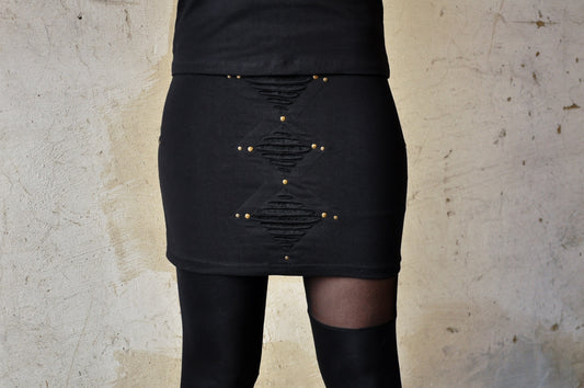 Minirock - Stretchrock mit Dreiecken und Nieten - schwarz
