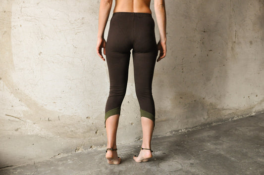 Dreiviertel Leggings mit Zipfel und Perlen - braun-olivgrün