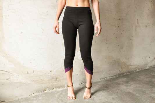 Dreiviertel Leggings mit Zipfel und Perlen - schwarz-violett