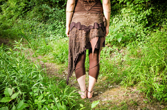 Asymmetrischer Lagenrock mit Beutel - Wickelrock, Schichtrock, Zipfelrock - braun
