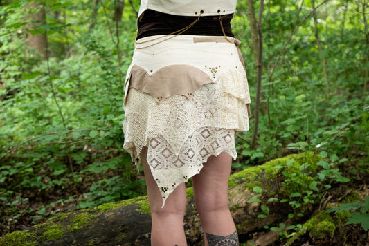 Asymmetrischer Lagenrock mit Beutel - Wickelrock, Schichtrock, Zipfelrock - naturweiß