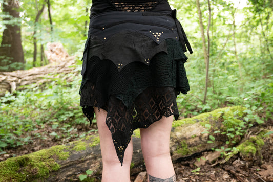 Fließende Stofflagen treffen auf zarte Spitzelemente, markante Nieten und coole Kunstleder-Details. Die Kombination mehrerer Lagen schafft einzigartige Silhouetten, die mit jedem Schritt Tiefe und Dynamik ins Outfit bringen. Alle Röcke lassen sich bequem und flexibel mithilfe eines Klettverschlusses schließen – für einen perfekten Sitz, Komfort und Bewegungsfreiheit, damit du dich den ganzen Tag wohlfühlst.