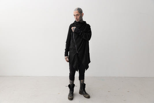 Kapuzenmantel - Strickmantel - genderneutral - schwarz