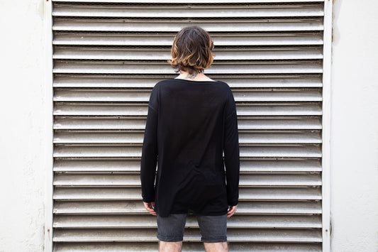 Asymmetrisches Longsleeve - transparent - mit sichtbaren Nähten - schwarz