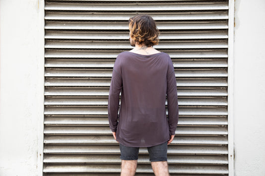Asymmetrisches Longsleeve - transparent - mit sichtbaren Nähten - lavendel-grau