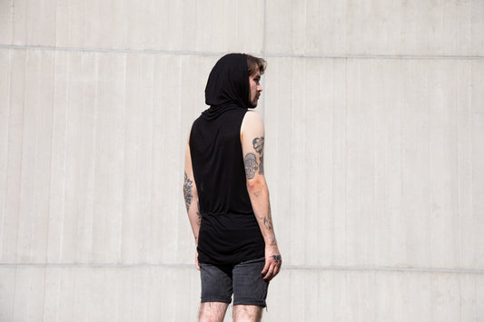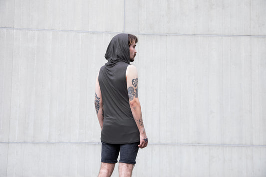 Transparentes Tanktop - mit Kapuze - metall-grau