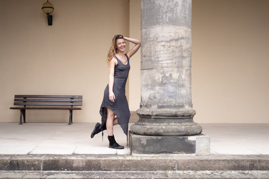 Trägerkleid mit Perlen - asymmetrisch - grau