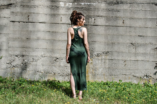 Langes Trägerkleid, Maxikleid - mit Racerback und Nieten - Batik, Tie Dye - grün-schwarz