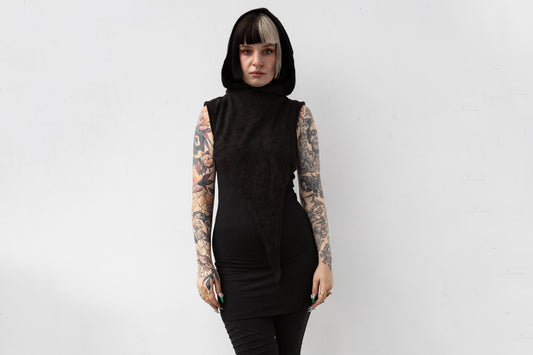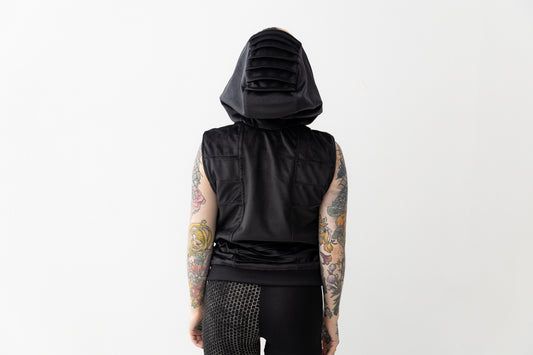 Samtweste - mit Dekonähten, Kapuze und Taschen - schwarz