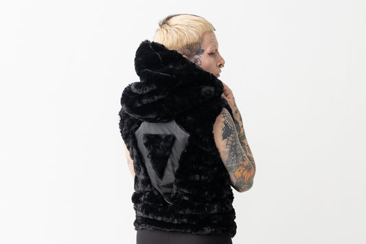 Weste - aus Kunstfell, mit Kapuze und Taschen - schwarz