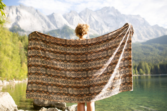 Sarong mit Schlangenmuster - Pareo, Tuch, Schal - Batik, Blockprint - schwarz-apricot