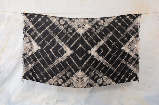 Sarong mit geometrischem Batikmuster - Pareo, Tuch, Schal - Tie-Dye - schwarz-beige-grau
