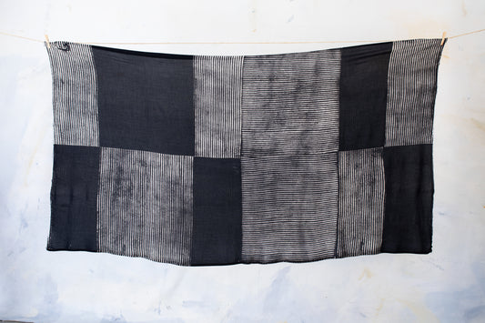 Sarong mit gestreiftem Batikmuster - Pareo, Tuch, Schal - Tie-Dye, Block Print - schwarz-beige-grau