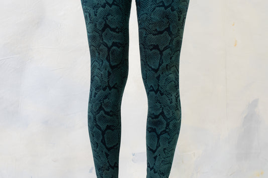 Leggings mit abstraktem Schlangenmuster - Siebdruck - unisex - blau-grün