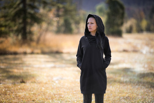Pullover Dress with Defect - with large Hood and Pockets - black