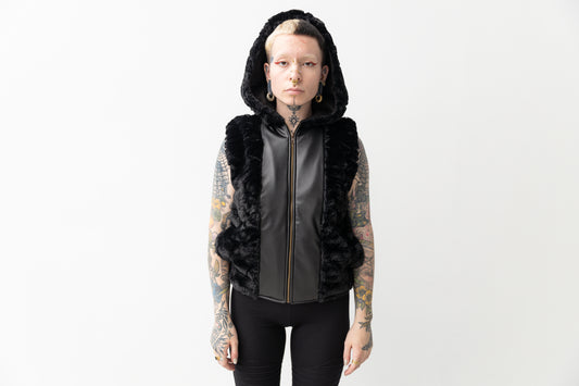 Vest with Defect - of Artificial Fur - black