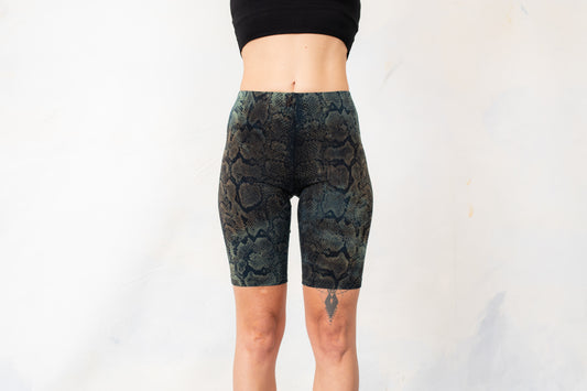 Biker Shorts - with abstract Snake Pattern - Batik, Screen Printing - blue-green-brown