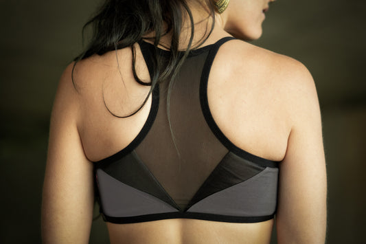 Mesh Bra - Bra Top, Bralette, Bustier, Sports Bra - Racerback with Transparent Mesh Fabric - gray