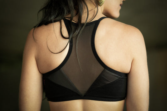 Mesh Bra - Bra Top, Bralette, Bustier, Sports Bra - Racerback with Transparent Mesh Fabric - black
