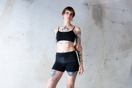 Be inspired by our unusual bras and shorts! They are suitable for everyday wear, workout clothing, or as statement pieces for your going-out outfit.