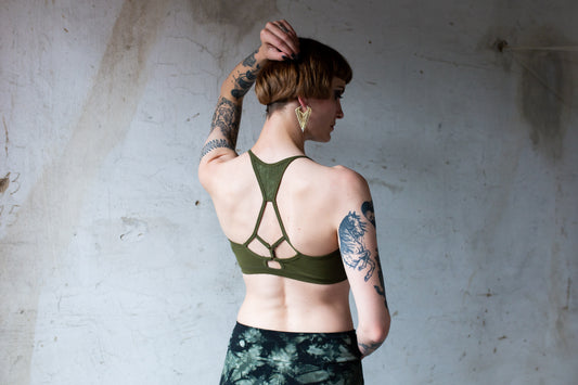 Strappy Bra - Bra Top, Bralette, Bustier, Yoga Top - olive green