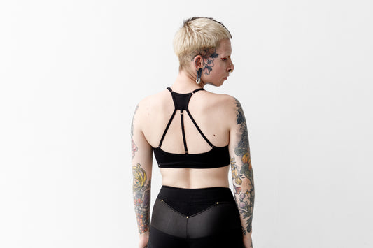 Bra Top with Brass Triangles and Cut-Out - Bralette, Bustier, Yoga Top - black
