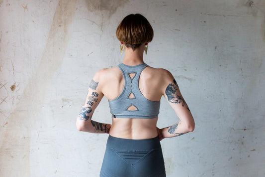 Racerback Bra Top, Sports Bra, Bustier, Yoga Top - with Rivets and Cut-Out Triangles - gray