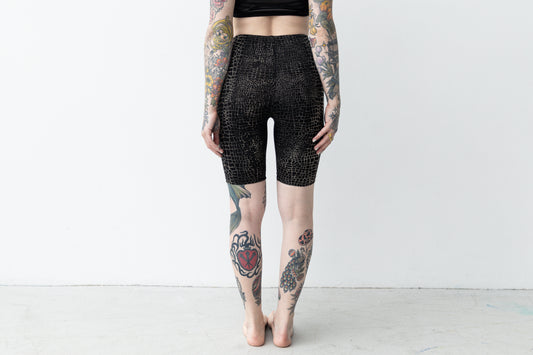 Biker Shorts - with abstract Alligator Pattern - Batik, Screen Printing - black-gray-beige