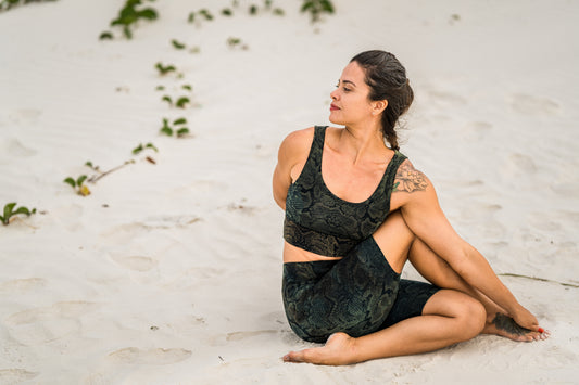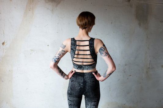 Yoga Bra - Bra Top, Bralette, Bustier - with Snake Pattern - black-gray-beige