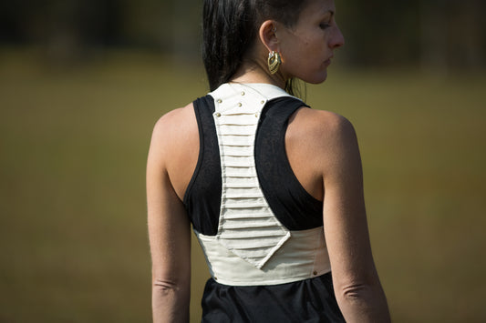 Short Vest - with seam structure, rivets and eyelets - offwhite
