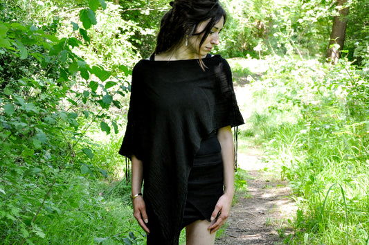 Summer Poncho - Cape, Shawl - with Waterfall Neckline and Knitted Look - black