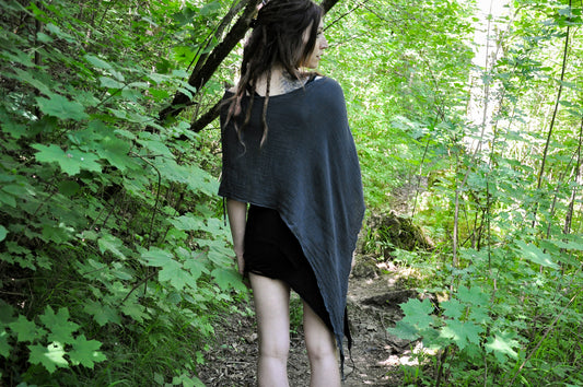 Poncho, Hood, Scarf - Asymmetrical Cut, with Long Pointy Ends - gray