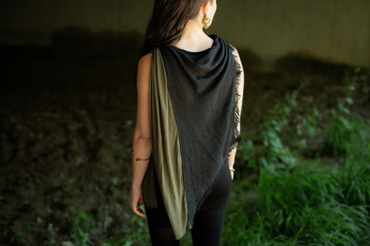 Summer Poncho - Cape, Shawl - with Waterfall Neckline and Knitted Look - black-olive green