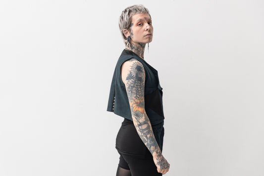 Vest - with Rivets and Fabric Decoration - gray