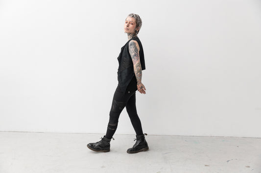 Vest - with Rivets and Fabric Decoration - black