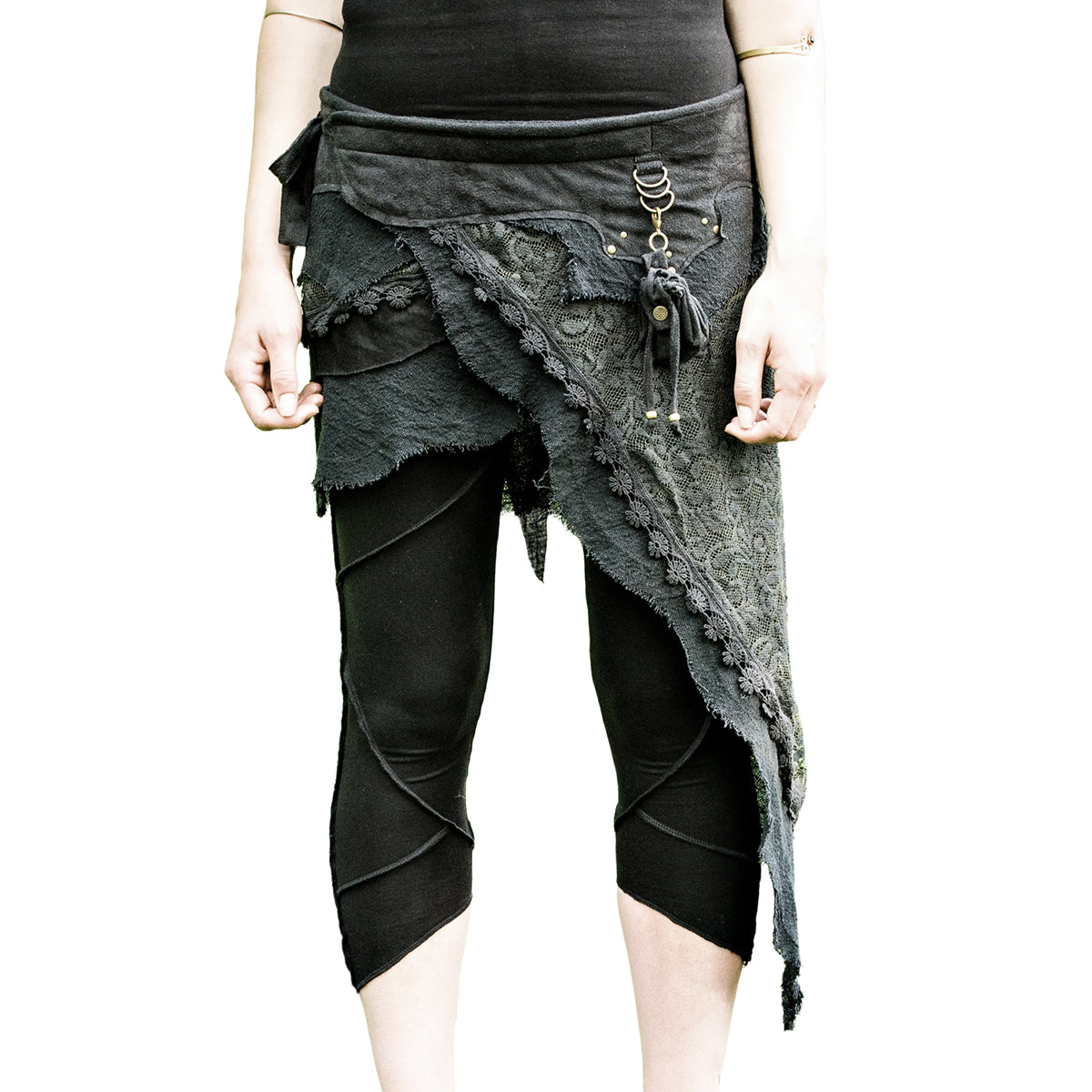 Asymmetrical Skirt with Pouch - Wrap Around Skirt, Layered Skirt - black