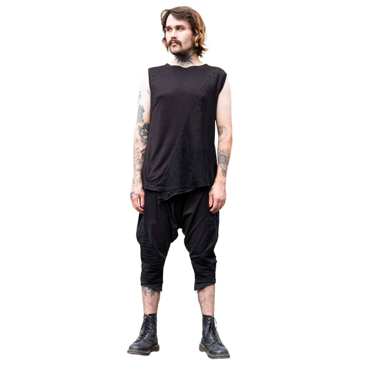 Baggy Pants - Overknee Shorts with Deep Crotch and Seam Structure - black