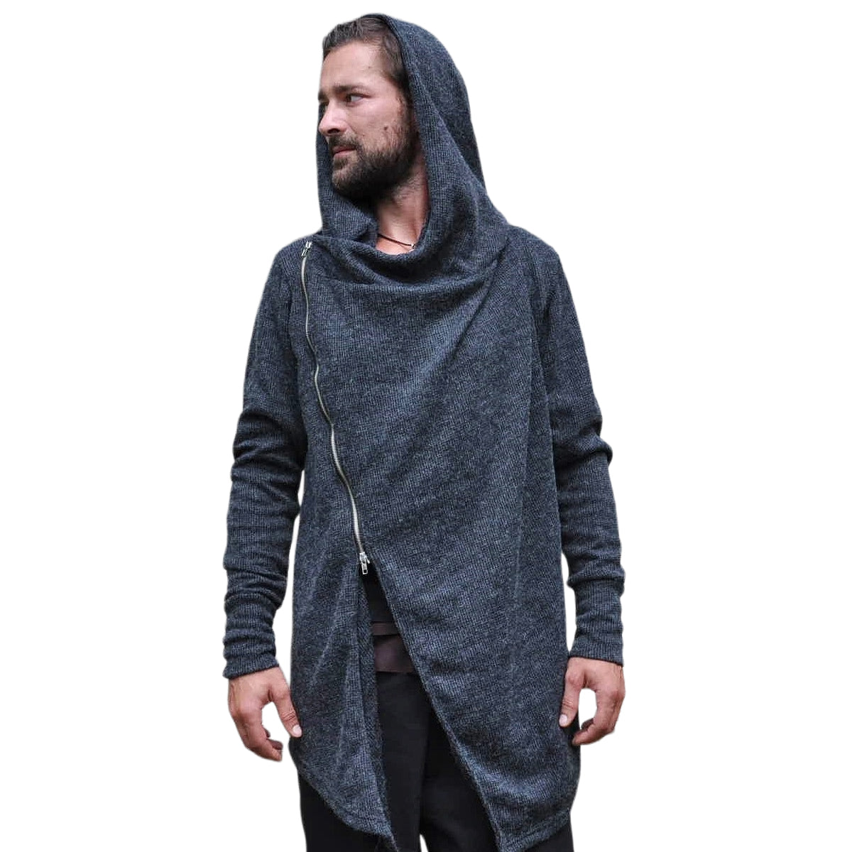 Cardigan - Knitted Coat, with diagonal zipper and hood - gray