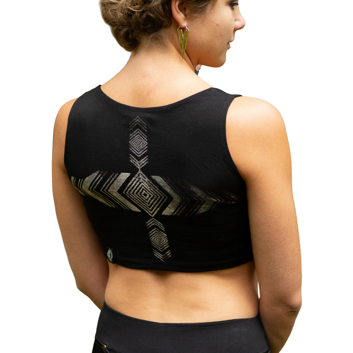 Crop Top - Short Top - with a Geometrical Pattern on the Back - Batik - black-beige-gray