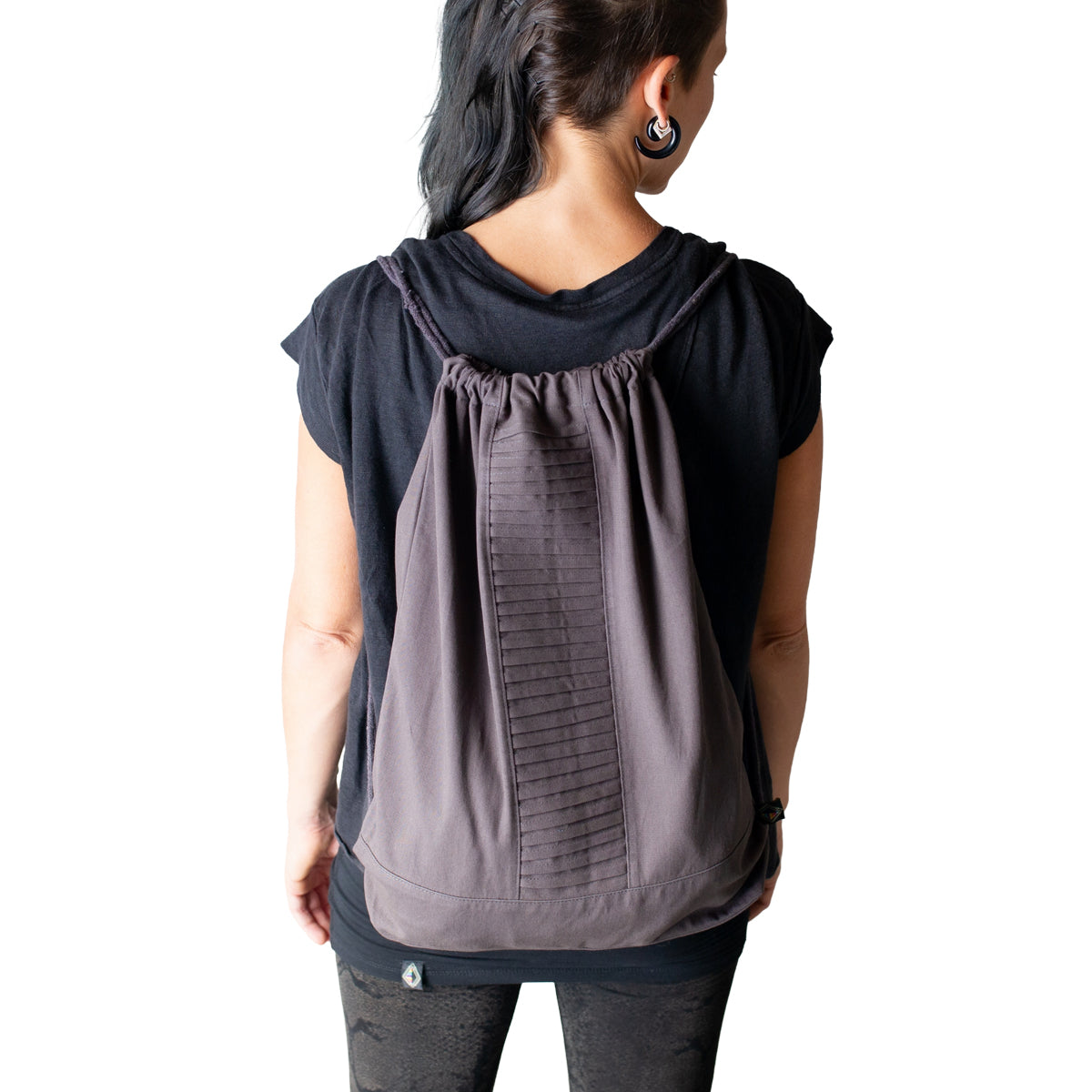 Drawstring Backpack - made of cotton - with seams - gray, lavender gray