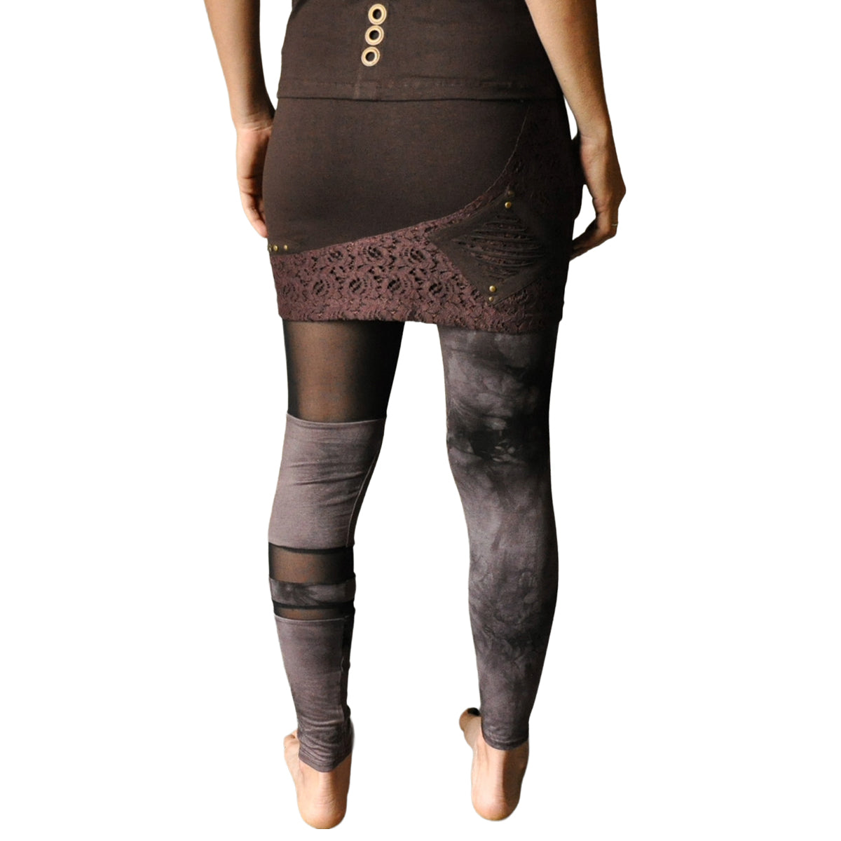 Elastic Mini Skirt - Stretch Skirt with Lace Elements and Rivets - brown