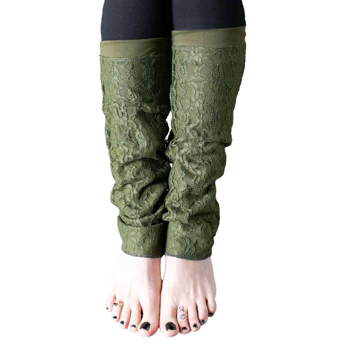Light-Weighted Leg Warmers - with floral Lace - olive green