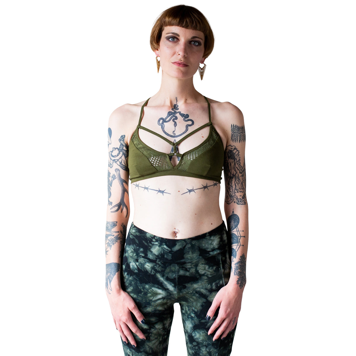 Strappy Bra - Bra Top, Bralette, Bustier, Yoga Top - olive green