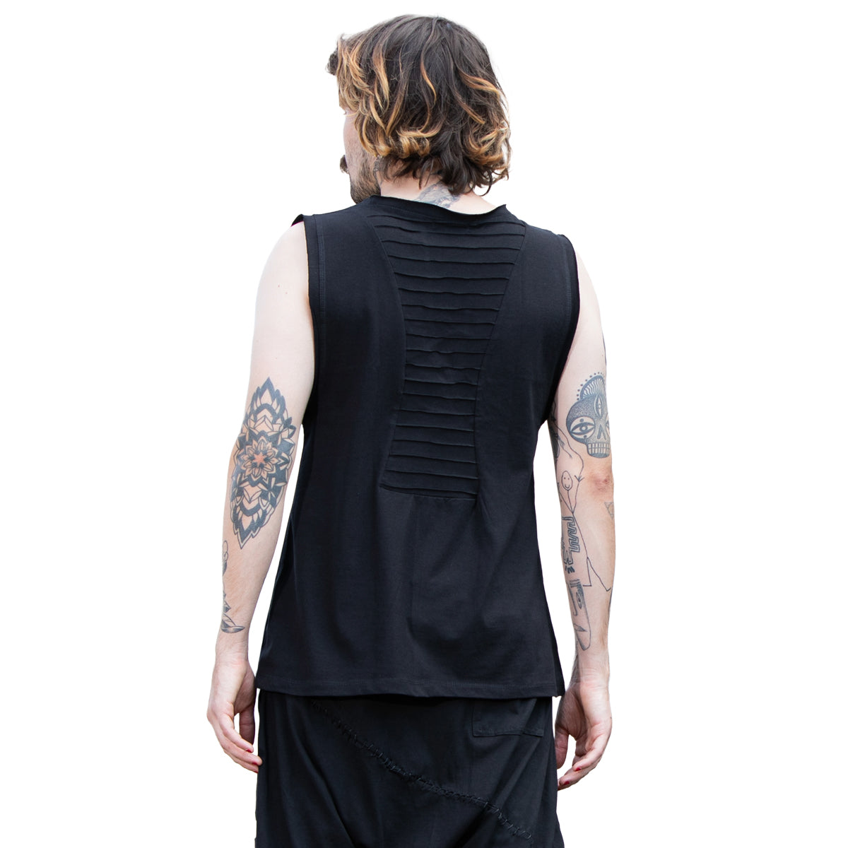 The tank top with deep armholes is cut slightly close-fitting. At the back it is decorated with a structure of seams. The material is grippy firm and yet pleasantly soft to wear.