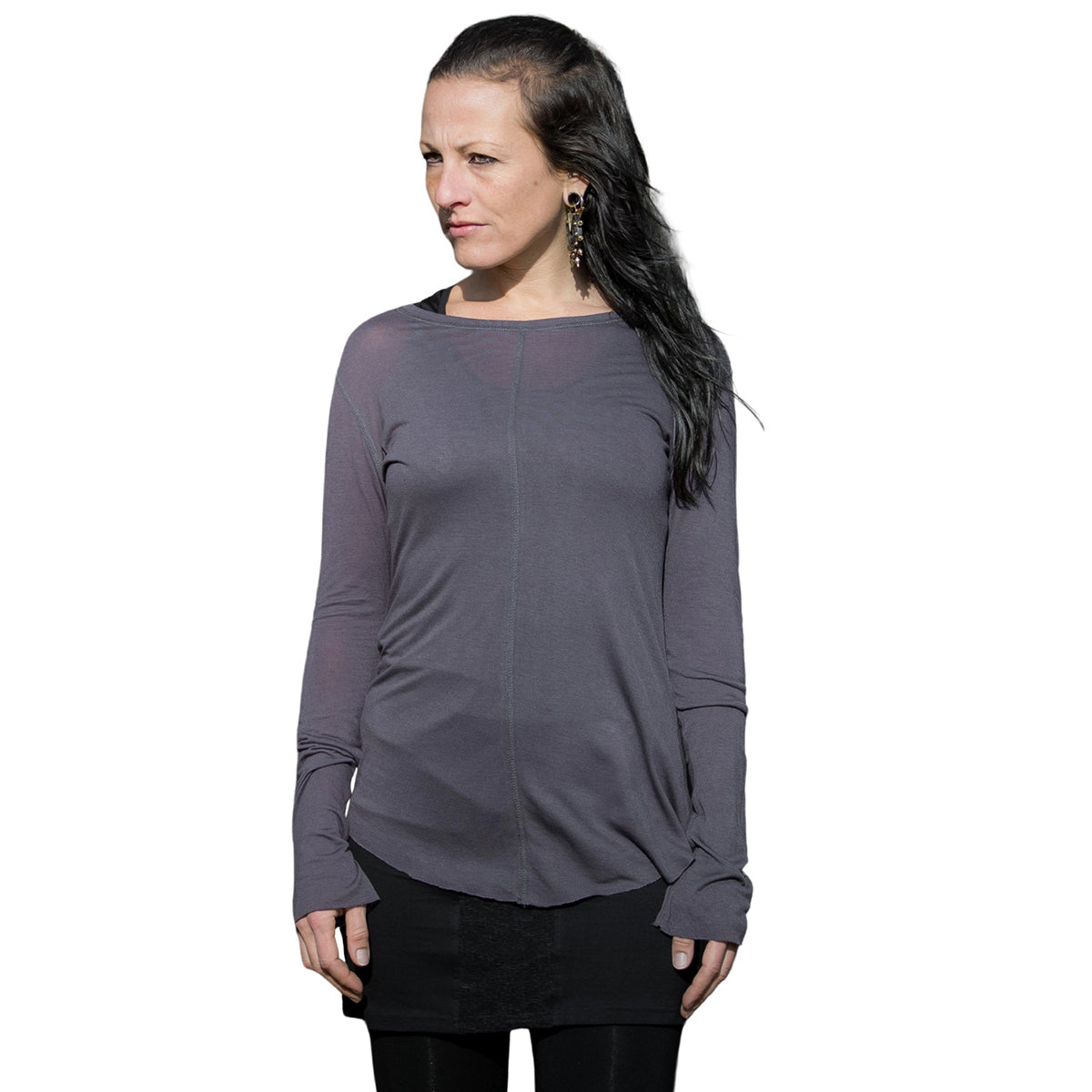 Comfortably soft and light long-sleeved shirt with visible seams.The cut of the shirt is loose-fitting. The fabric is slightly transparent and feels pleasantly soft on the skin. Visible seams give the long sleeve shirt a special touch.