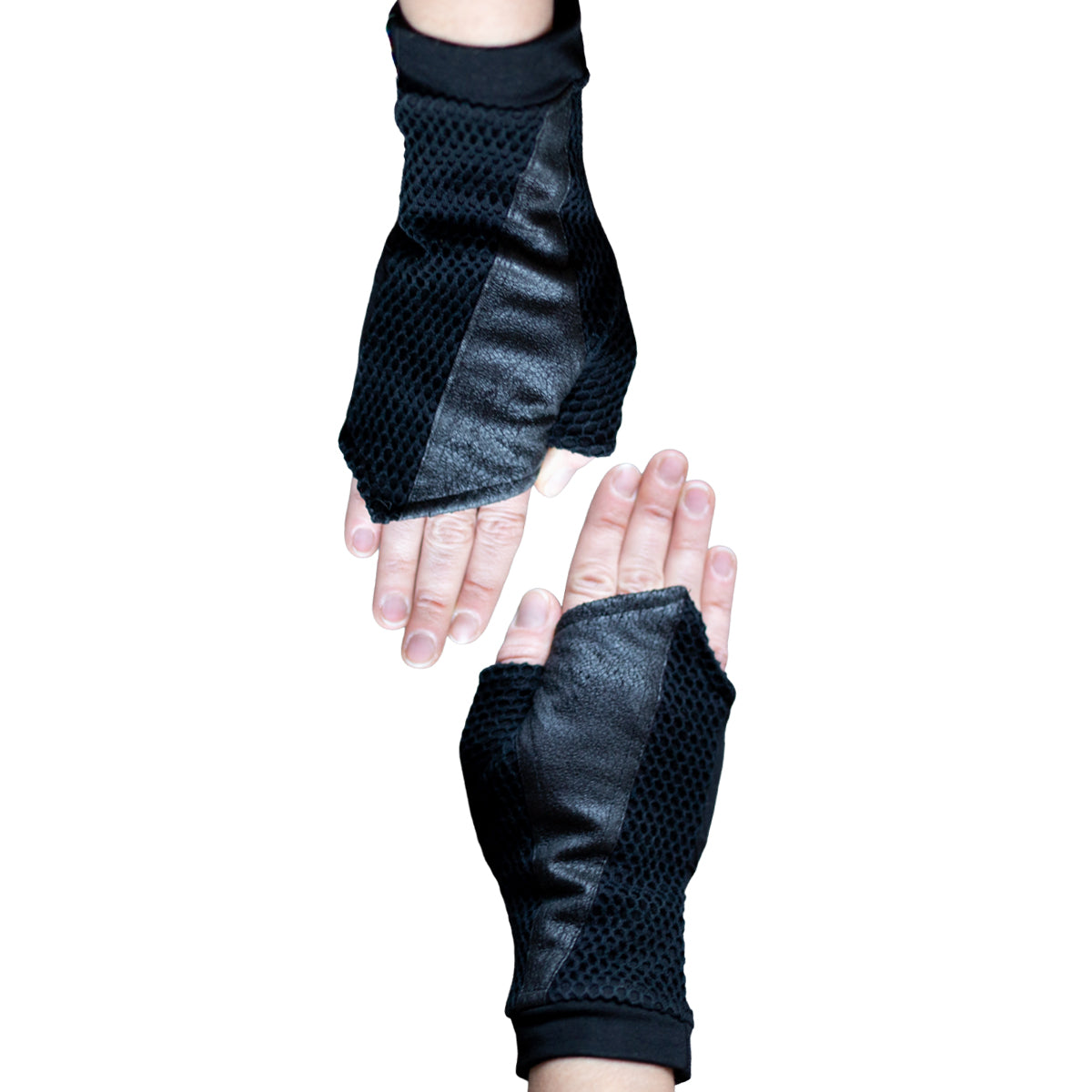 Wrist Warmers in Net Look - Arm Warmers, Hand Warmers - with Artificial Leather - unisex - black